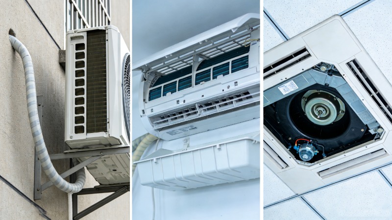 In the air conditioners, condensation does not come out freely; instead, it is connected, led, and expelled through a complete design.